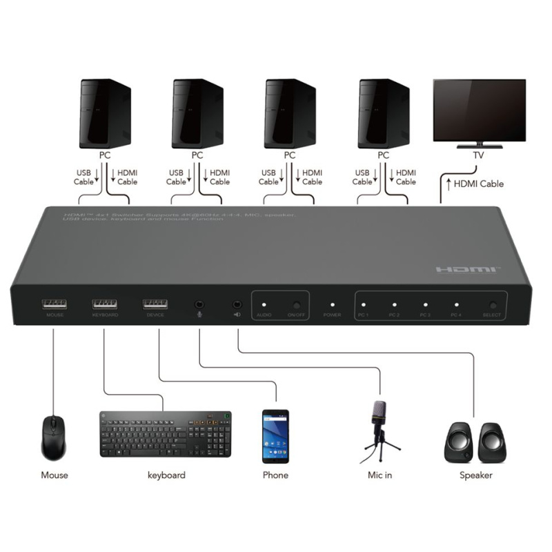 SWITCH 4 PORTS KVM 4K 4U EN HDMI MC-KVM 401K